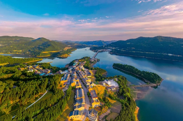 李能周《夕阳下的升钟湖长岭段》