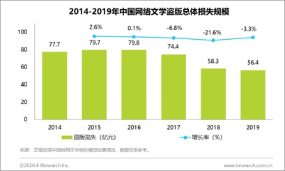 数据显示,去年全年网文行业因盗版损失56.4亿元,尽管与2017年的74.4亿元、2018年的58.3亿元相比,总体损失呈逐年走低趋势;但在业内看来,2019年下降幅度已然放缓,需要行业保持高度警惕性。