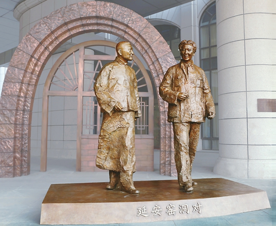 吴为山雕塑:《延安窑洞对》