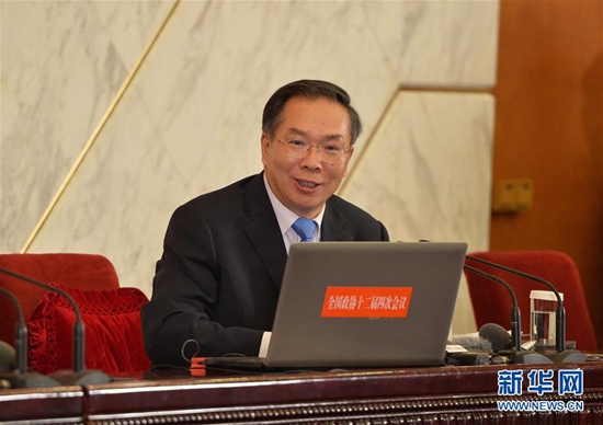 3月2日,全国政协十二届四次会议新闻发布会在北京人民大会堂举行,大会新闻发言人王国庆介绍会议有关情况并回答中外记者提问。这是王国庆在发布会上回答记者提问。新华社记者 李鑫 摄