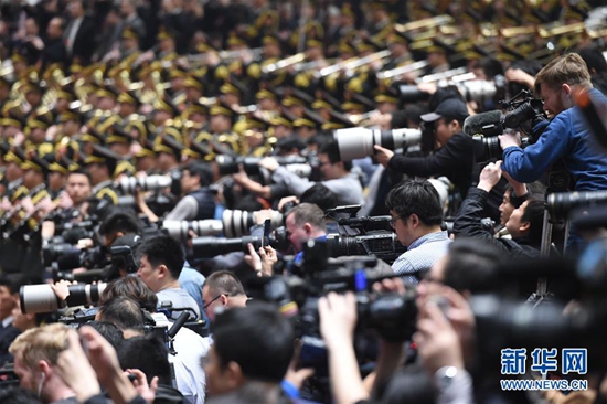 3月16日,第十二届全国人民代表大会第四次会议在北京人民大会堂举行闭幕会。这是记者在会场采访拍摄。 新华社记者 杨宗友 摄