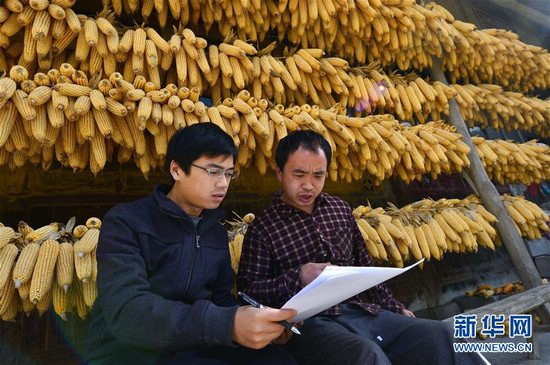 湖北省恩施宣恩县扶贫工作人员吴松(左)在李家河回龙村贫困农户乐松清家中商量脱贫致富的路子(2015年12月16日摄)。当时间的指针指向又一个五年开局,全面建成小康社会迈入决胜阶段。 2016年全国两会召开在即。国家的宏伟愿景,人民的小康期盼,交响于3月的北京。未来五年,中华民族将穿越萦绕千年的小康梦想。站在新的历史起点,一幅亿万人民勠力同心、奋力迈向新征程的壮丽图景即将展开。 新华社发 宋文 摄