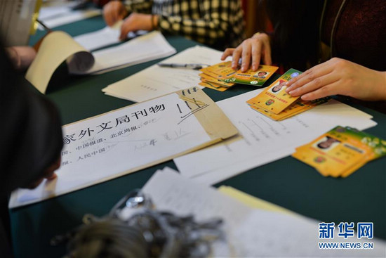 3月1日,记者们在全国政协礼堂排队领取证件。当日下午,全国政协十二届四次会议内地记者情况通报会在全国政协礼堂召开。会后,参加全国政协十二届四次会议采访报道的记者领取证件。新华社记者 金立旺 摄