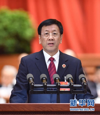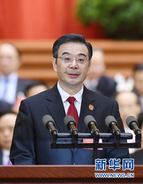 3月13日,十二届全国人大四次会议在北京人民大会堂举行第三次全体会议。最高人民法院院长周强作最高人民法院工作报告。 新华社记者 高洁 摄