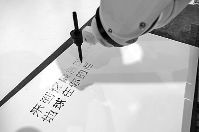 人工智能写诗为网络诗歌写作带来丰富启示,值得网络诗歌写作者加以推敲和玩味。图为一款智能机械手臂正在写诗。资料图片