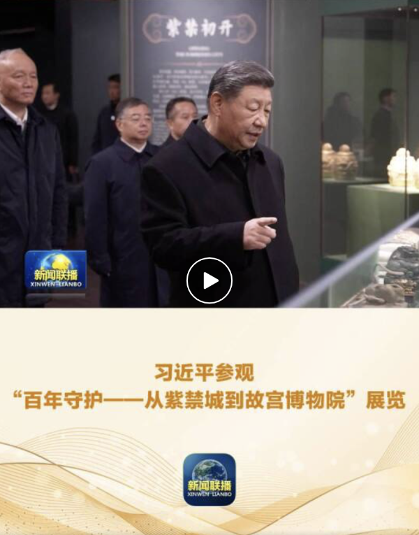 10月27日,习近平总书记在故宫博物院参观“百年守护——从紫禁城到故宫博物院”展览时指出,新起点上,故宫博物院要发扬优良传统,坚持文物属于人民、服务人民,加强文物保护修复,提高文物活化利用水平,让故宫成为重要的爱国主义教育基地,成为世界读懂中华文明、读懂中华民族的重要窗口。