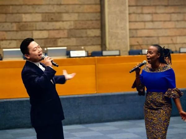 2025年6月5日,联合国内罗毕办事处与驻肯尼亚使馆共同举办“文明对话国际日”纪念活动。图为中非艺术家共同在活动中献唱歌曲(图源:中国驻肯尼亚大使馆微信公众号)