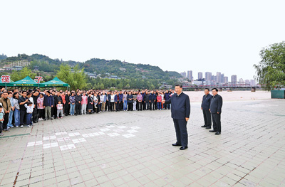 9月10日至13日,中共中央总书记、国家主席、中央军委主席习近平在甘肃考察。这是11日下午,习近平在黄河兰州中山桥段考察时,同在场的干部群众亲切交流。