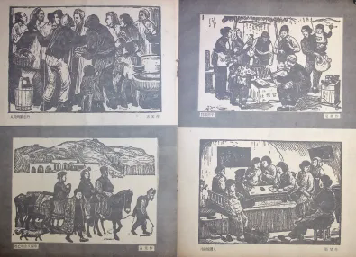 伴随抗日根据地的文化建设,陕甘宁边区的版画艺术以延安鲁艺为中心,形成了以古元、彦涵、夏风为代表的延安画派。其中,古元的《减租斗争》更是成为延安木刻的经典之作,生动地表现了农民在根据地减租减息运动中与地主说理斗争的情形,反映出劳动人民当家做主的新风。
