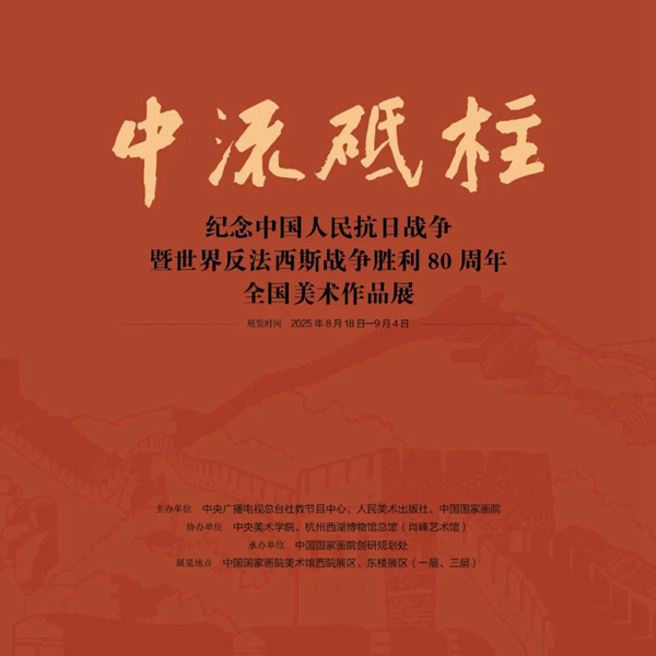 8月18日,由中央广播电视总台社教节目中心、人民美术出版社、中国国家画院主办,中央美术学院、杭州西湖博物馆总馆(肖峰艺术馆)协办,中国国家画院创研规划处承办的“中流砥柱——纪念中国人民抗日战争暨世界反法西斯战争胜利80周年全国美术作品展”在中国国家画院美术馆西院展区、东楼展区(一层、三层)开展。
