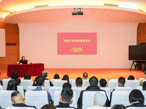 11月4日,广州市文联、广东省文艺评论家协会、广州地区出版物新闻工作者协会联合举办习近平文化思想宣讲会。广州市文联机关、直属单位,广州市各文艺家协会、区文联、产(行)业文联、业务主管文艺类社会组织以及广州地区出版物新闻工作者协会共150余人参加宣讲会。