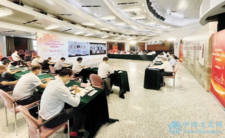 以“党领导的中国文艺发展道路”为主题,中国文艺评论家协会主席夏潮,著名电影表演艺术家田华,著名文艺评论家仲呈祥,北京大学中文系教授董学文,中国艺术研究院研究员王安奎,中国文艺评论家协会副主席、北京师范大学文艺学研究中心教授王一川,中国文艺评论家协会顾问路侃,中国音协顾问、中央音乐学院教授王次炤,清华大学美术学院教授、《艺术与科学》执行主编陈池瑜,中国社会科学院民族文学研究所党委书记、副所长、研究员丁国旗,山东大学特聘教授范玉刚等艺术家和专家学者进行交流发言。