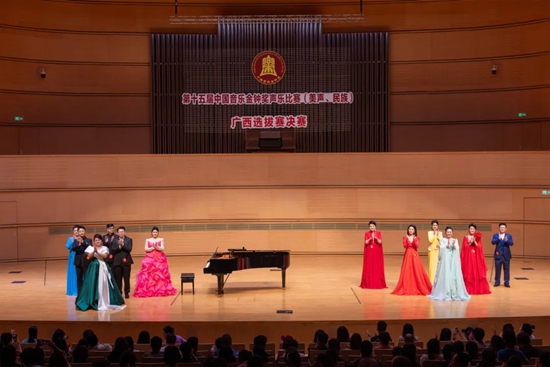 4月25日晚,由广西文联、广西音协主办,广西艺术学院音乐学院、南宁市文联、南宁市文化广电和旅游局承办,广西保利剧院管理有限公司协办的第十五届中国音乐金钟奖声乐比赛(美声、民族)广西选拔赛决赛在广西文化艺术中心音乐厅举行,近千名观众观看了比赛。