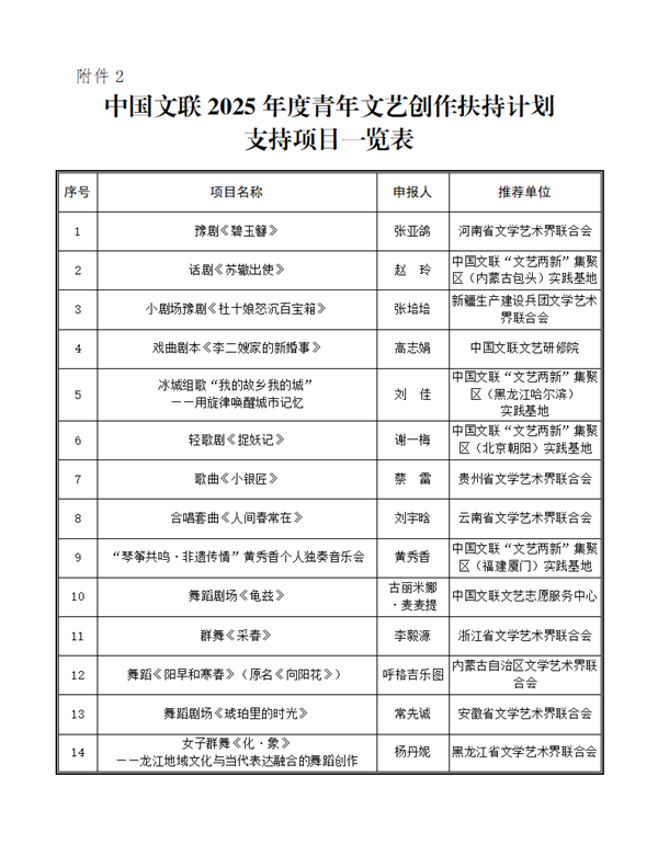 2.中国文联2025年度青年文艺创作扶持计划支持项目一览表