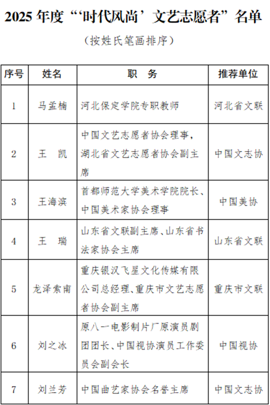 2025年度“‘时代风尚’文艺志愿者”名单发布