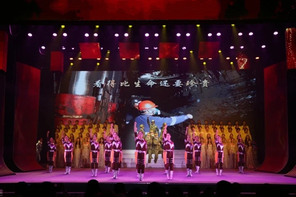 演出在淮河能源集团带来的花鼓灯《鼓韵耀山河》中盛大开场。由中国平煤神马集团、淮北矿业集团、华能扎赉诺尔煤业公司、山西焦煤集团、开滦集团、淮河能源集团的歌手联袂表演的歌曲联唱《灯火里的中国》《篇章》《请到草原来》《共圆中国梦》,歌声悠扬,气势恢宏。随后,琴书快板《百年煤矿百年情》,戏曲联唱豫剧《焦裕禄》、黄梅戏《女驸马》、京剧《中国脊梁》,原创歌舞《国家宝藏》,歌曲《有一种精神叫忘我》《上春山》,音乐诗朗诵《中国矿山》,以及晋能控股装备制造集团的原创歌曲《远航》、舞蹈《咱们工人有力量》、合唱《矿工万岁》等精彩节目轮番上演。演出以多样的文艺形式,呈现了煤炭人“采撷光明献万家”的赤诚情怀和“千尺井下写春秋”的奋斗足迹,弘扬“特别能吃苦、特别能战斗、特别能奉献”行业精神,彰显出煤炭行业能源供应“稳定器”“压舱石”的责任担当。